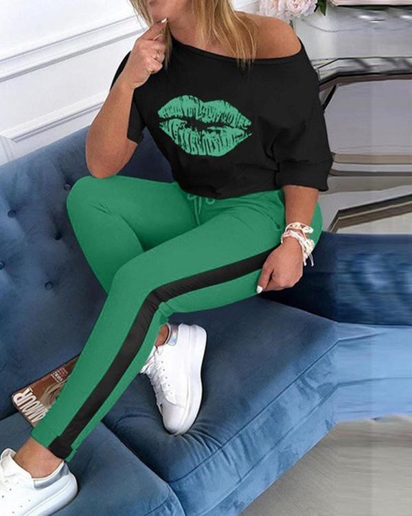 Item ID: T0375 Description: Style:Casual Pattern Type:Print Material:Polyester Neckline:One Shoulder Occasion:Casual Package included: 1*Set Note Due to the difference between different monitors, the picture may not reflect the actual color of the item.